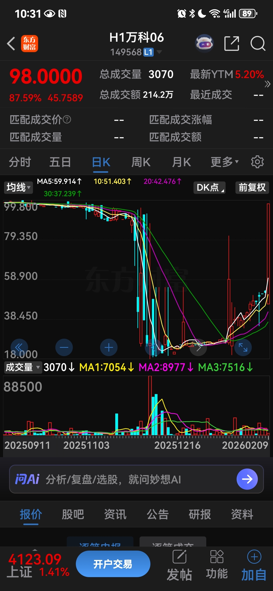 $万 科A(SZ000002)$ 万科债都98元了