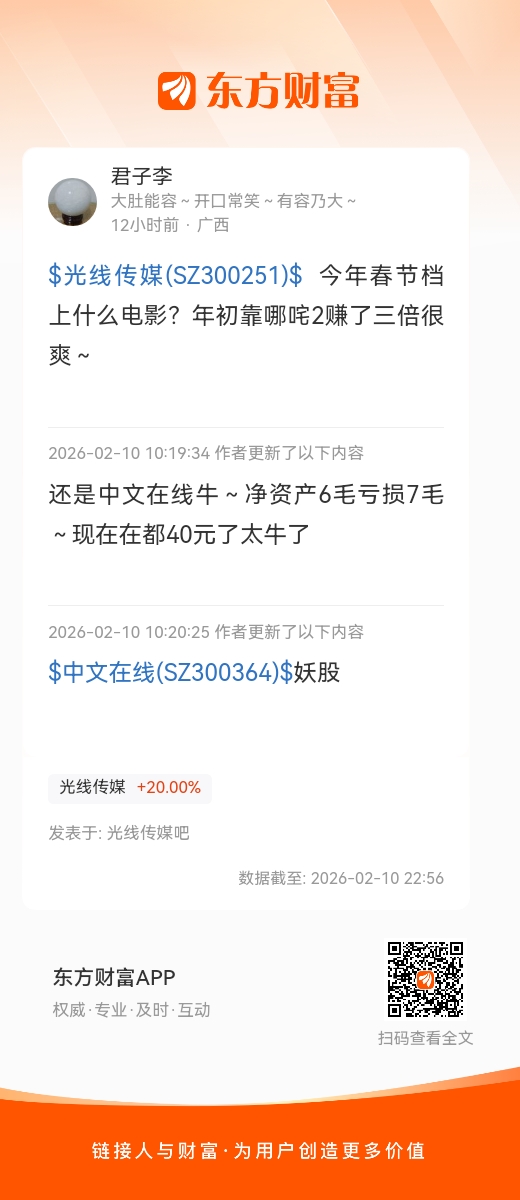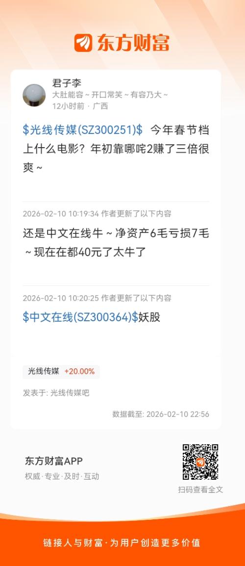 $光线传媒(SZ300251)$  今年春节档上什么电影?年初靠哪咤2赚了三倍很爽~