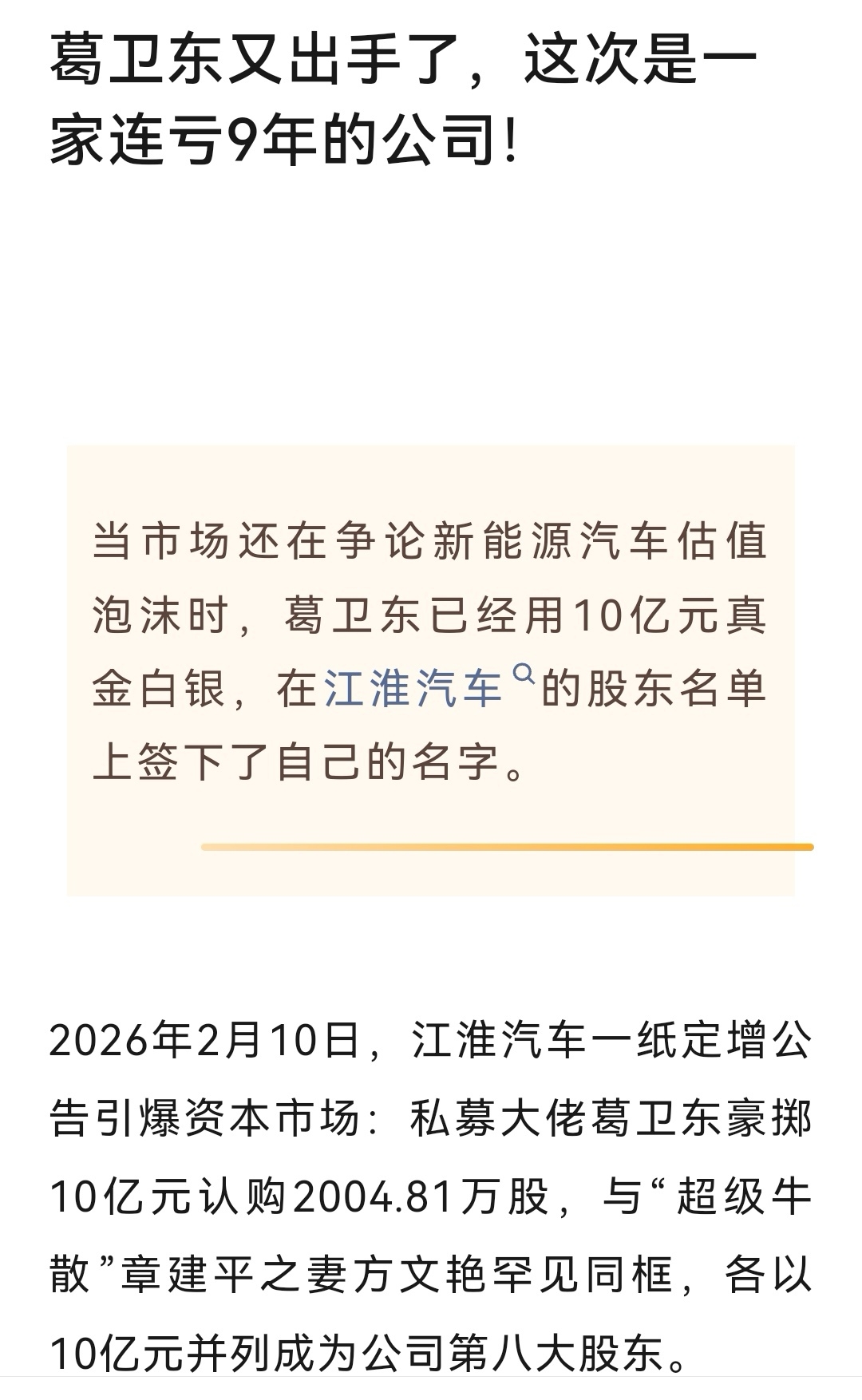 我不是给江淮汽车卖广告,意思是即使连亏9年,一样能入大佬的法眼。我们的万科,有国