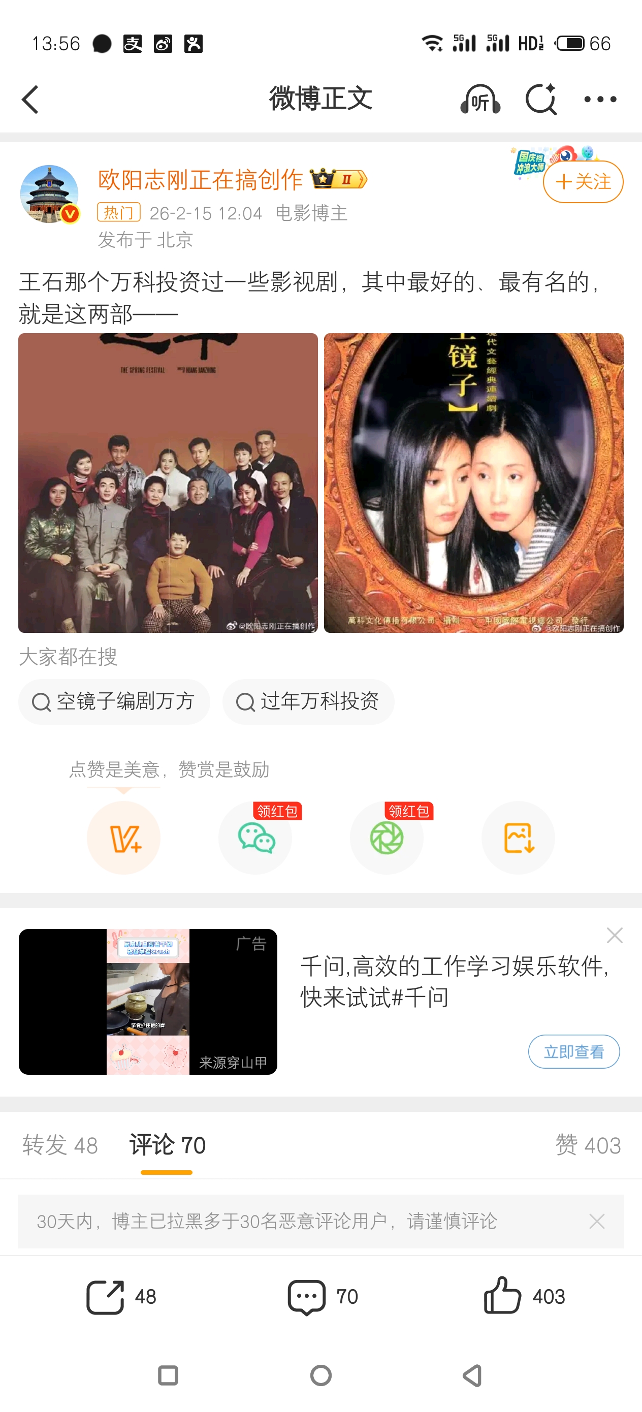 $万 科A(SZ000002)$ 那年万科投资的电视剧$影视动漫制作(BK1299)$