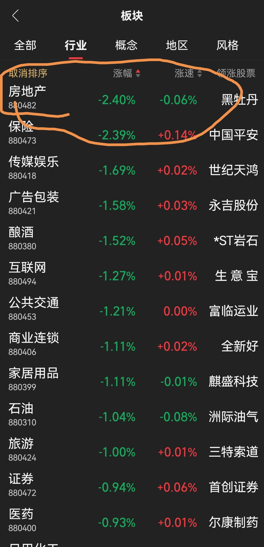 房地产今天第一,跌幅第一,整个股票市场也接近50%上涨
