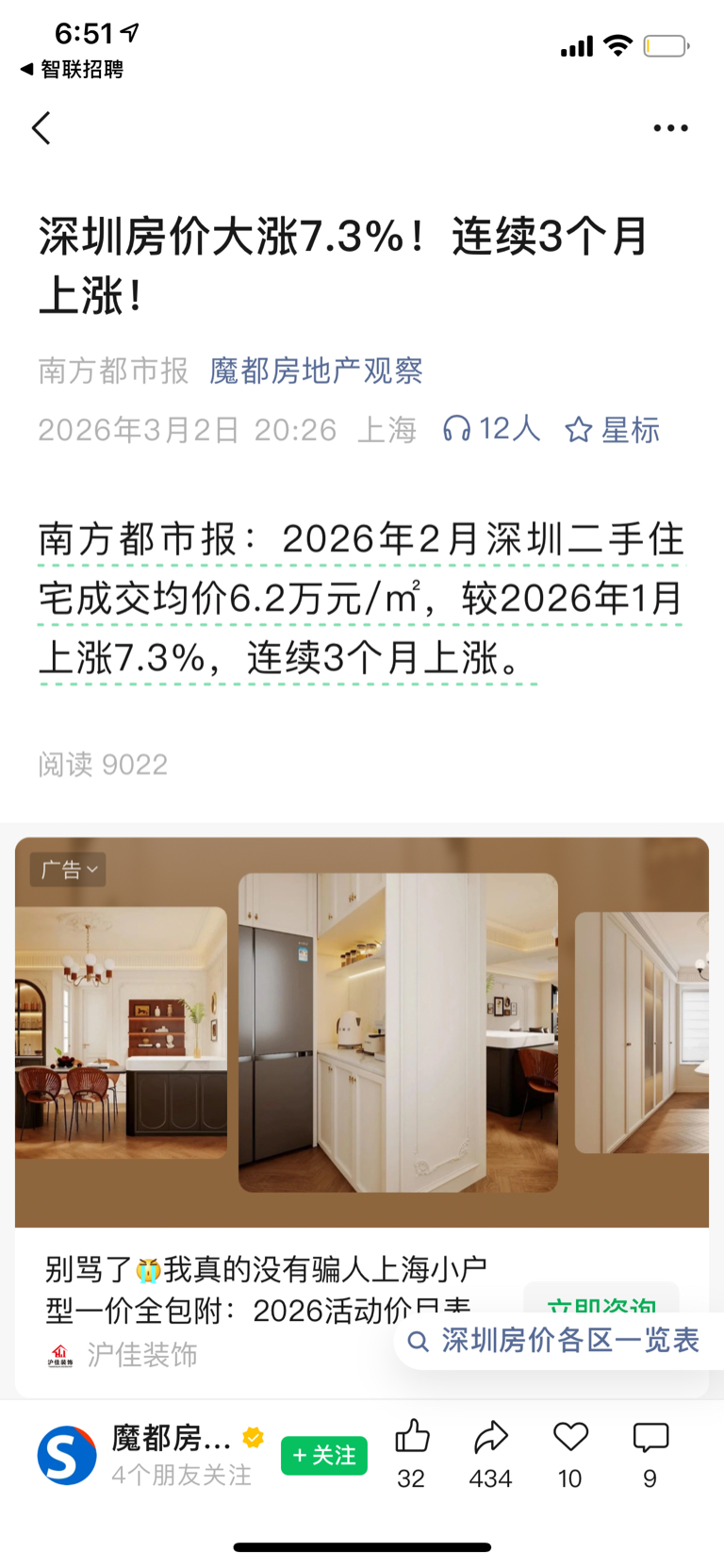 $万 科A(SZ000002)$ 深圳房价连续3个月上涨