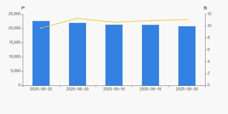 2025年8月20日至今,公司股东户数有所下降,区间跌幅为8.13%。2025年8月20日至2025年9月30日区间股价上涨14.88%。