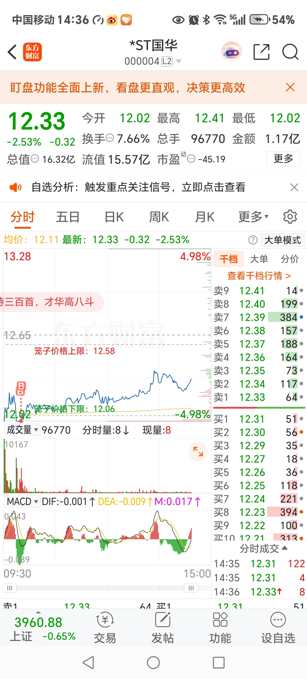 $*ST国华(SZ000004)$ 今天早上把最后50手的资金打了出去,国华只买不卖