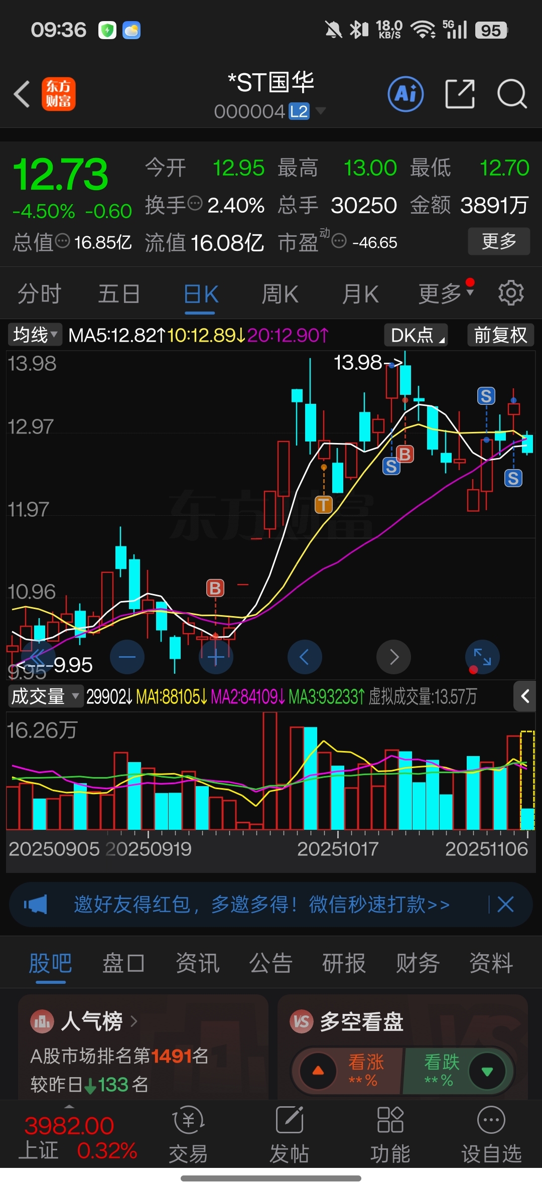 $*ST国华(SZ000004)$ 我就知道这是个什么垃圾,还好昨天清了