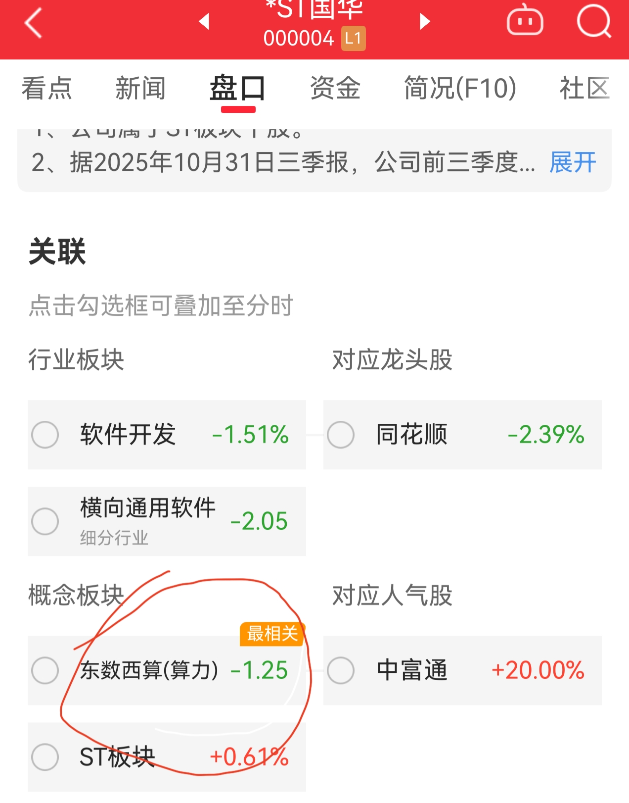$*ST国华(SZ000004)$ 为什么同花顺上走算力概念,东才上没有