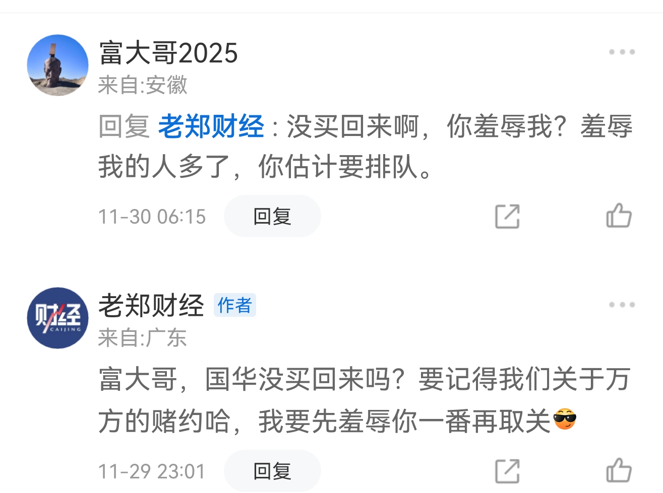 $*ST国华(SZ000004)$ @老郑财经 快来羞辱我,抓紧,我想被羞辱$*ST万方(SZ000638)$