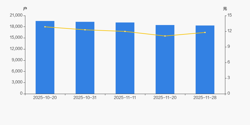2025年10月20日至今,公司股东户数有所下降,区间跌幅为6.20%。2025年10月20日至2025年11月28日区间股价下降8.40%。