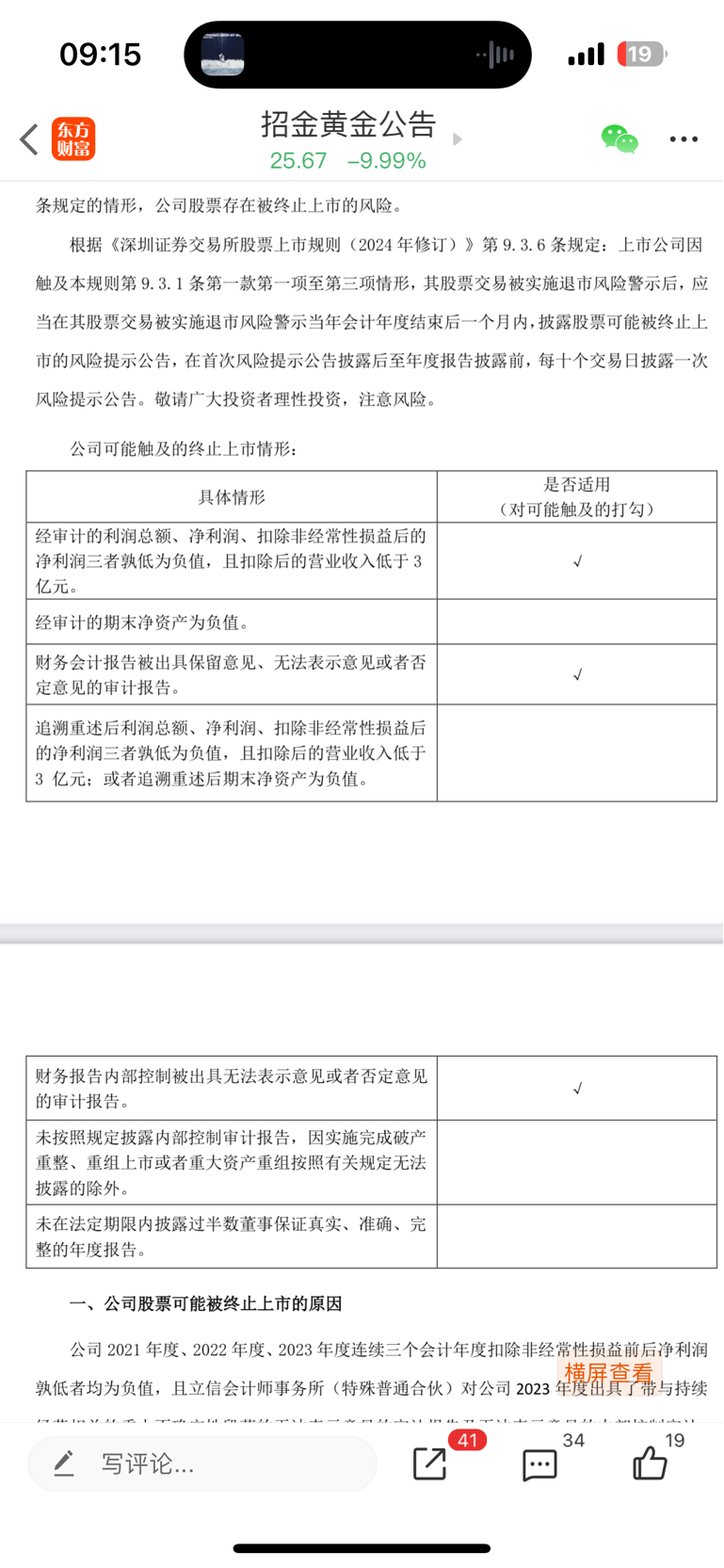 这是招金黄金,也就是以前的*st中润,去年的业绩预告,年报翻盘。所以别太担心。而