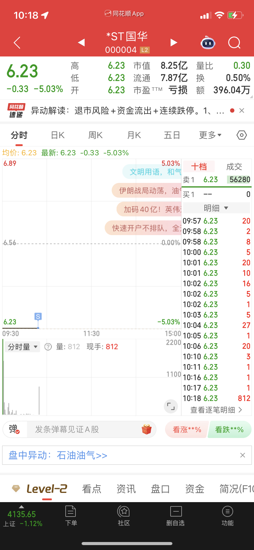 $*ST国华(SZ000004)$ 感谢800手的大哥,让我出去啦!谢谢!