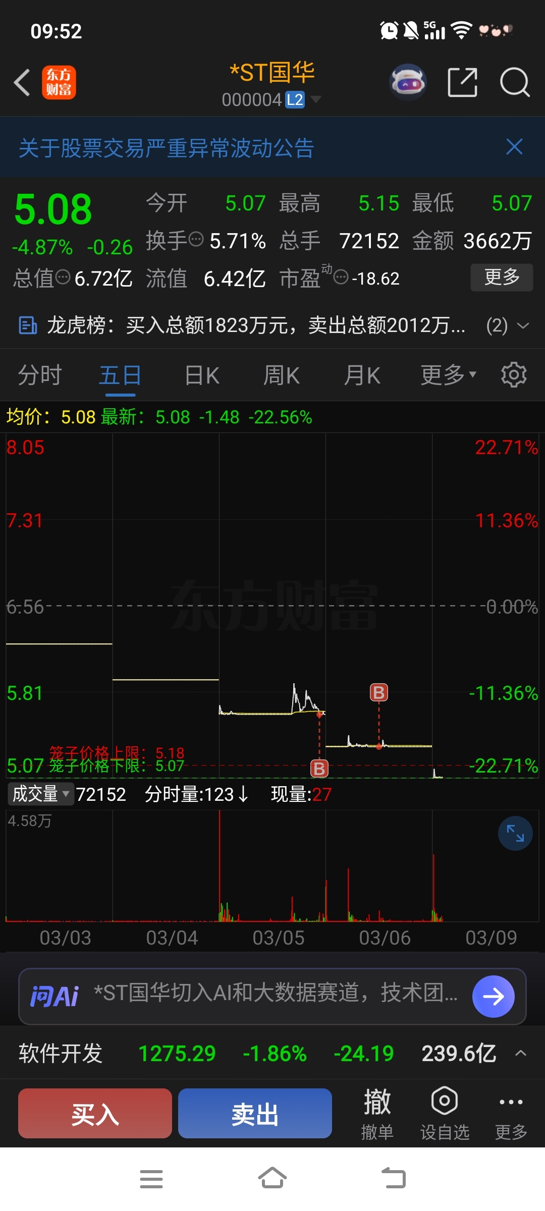 $*ST国华(SZ000004)$ 买不完根本买不完!到底有没有底啊!
