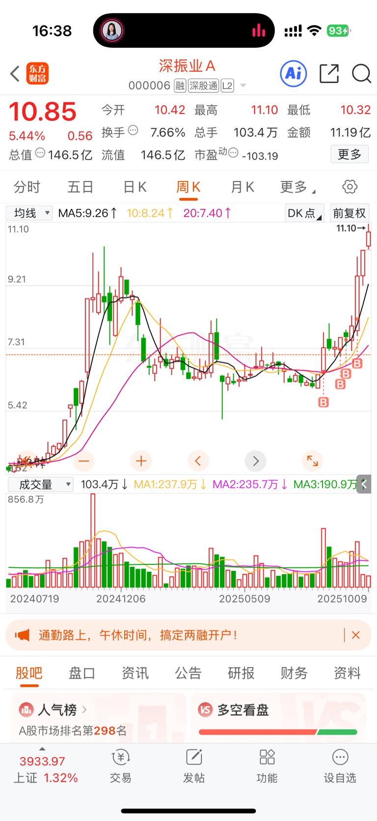 $深振业A(SZ000006)$ 原来你不知不觉,破了去年新高了