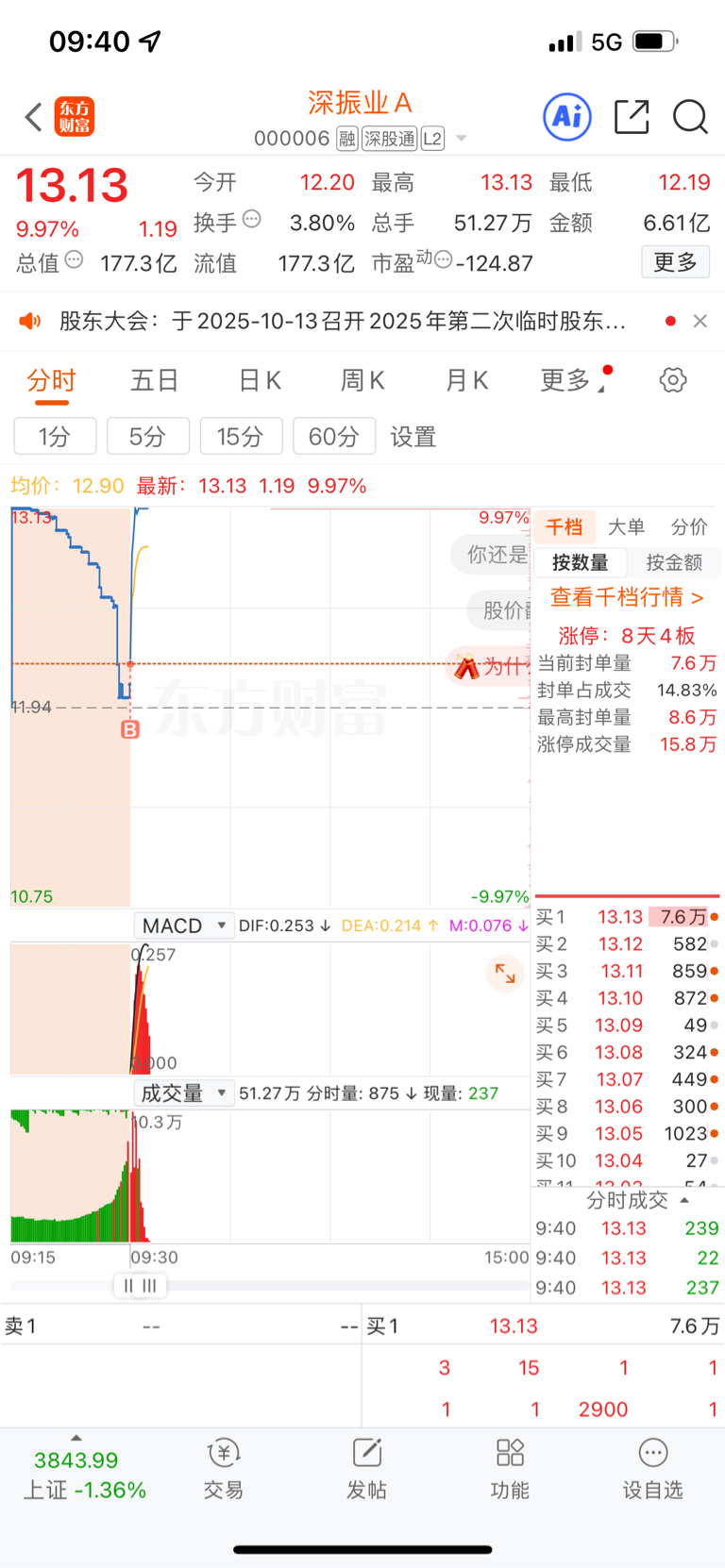 $深振业A(SZ000006)$ 反正今天卖不了…不看了