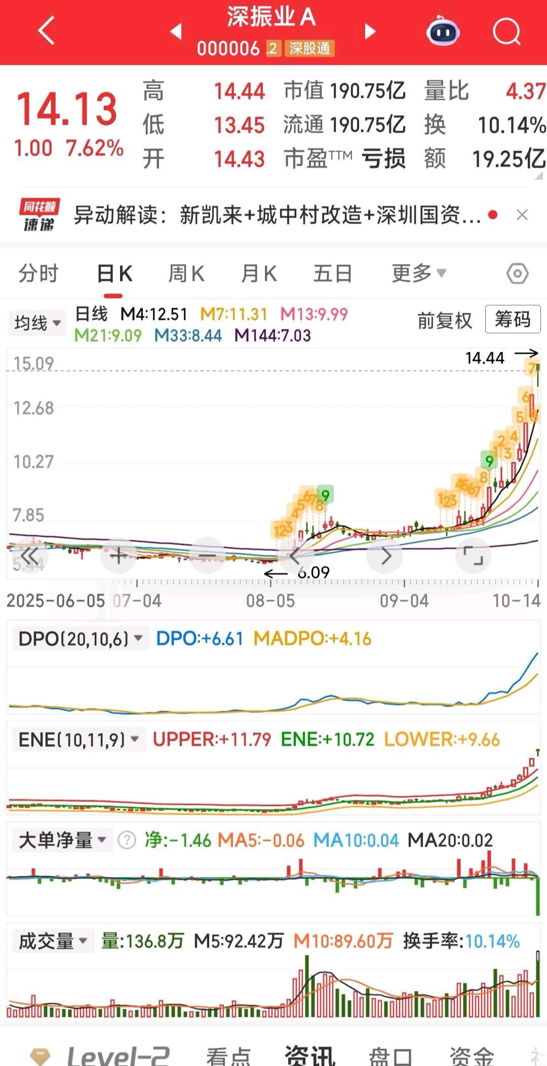 主力说:深振业A中午收盘前封涨停。并说有个叫新凯莱的主看上了深振业A。