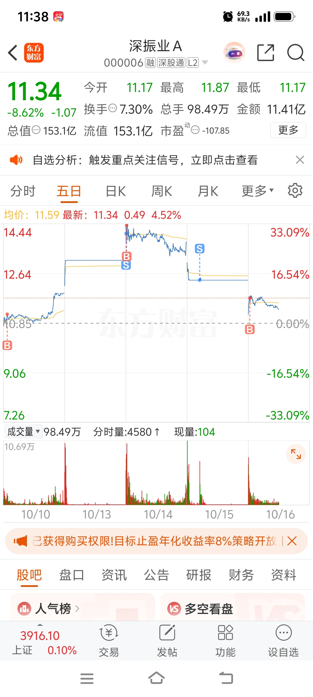 $深振业A(SZ000006)$ 我对自己真的是无语了,哎