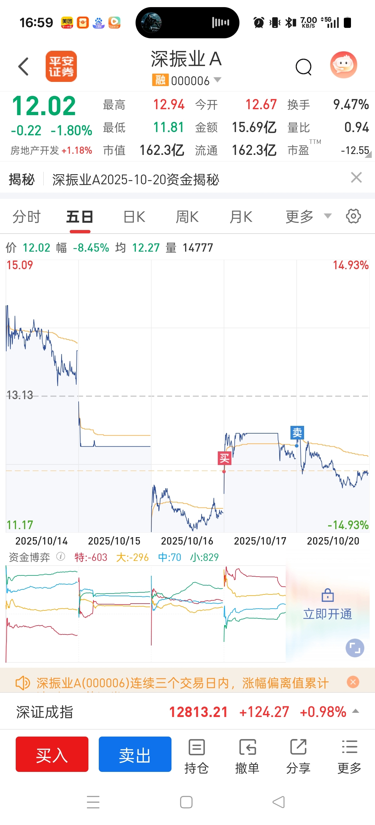 $深振业A(SZ000006)$ 老子不可能做三天股东。炸板次日必卖~