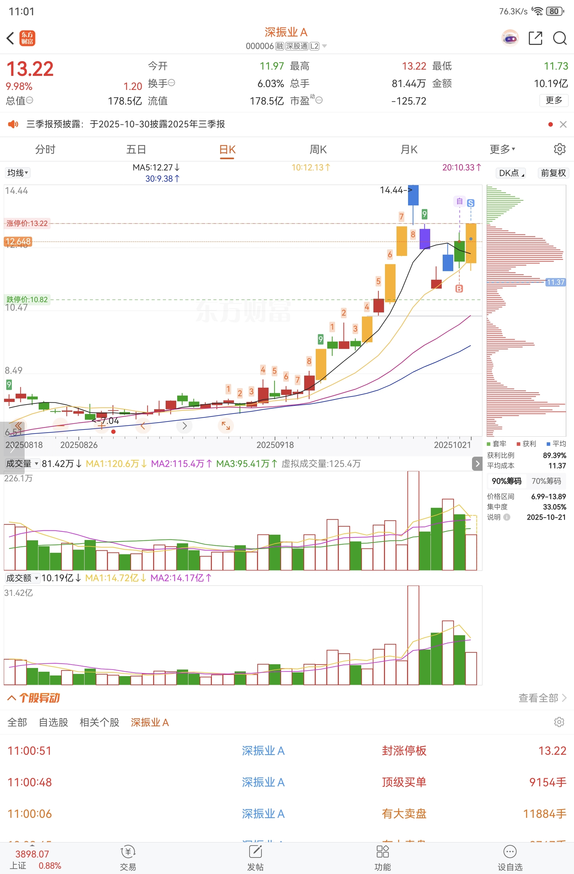$深振业A(SZ000006)$ 昨天最高点进的阴跌一天人都麻了,半路出了一些,剩余的继续拿