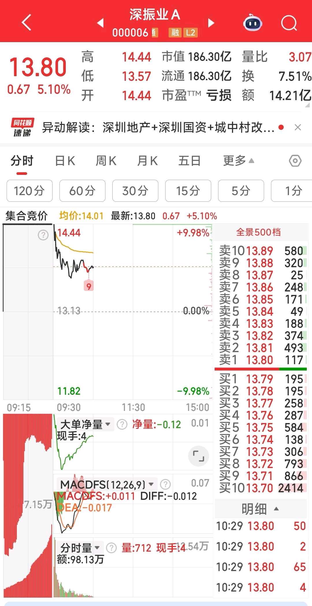 10点35分时,13.79元提示全仓加仓有重组预期的深振业A。