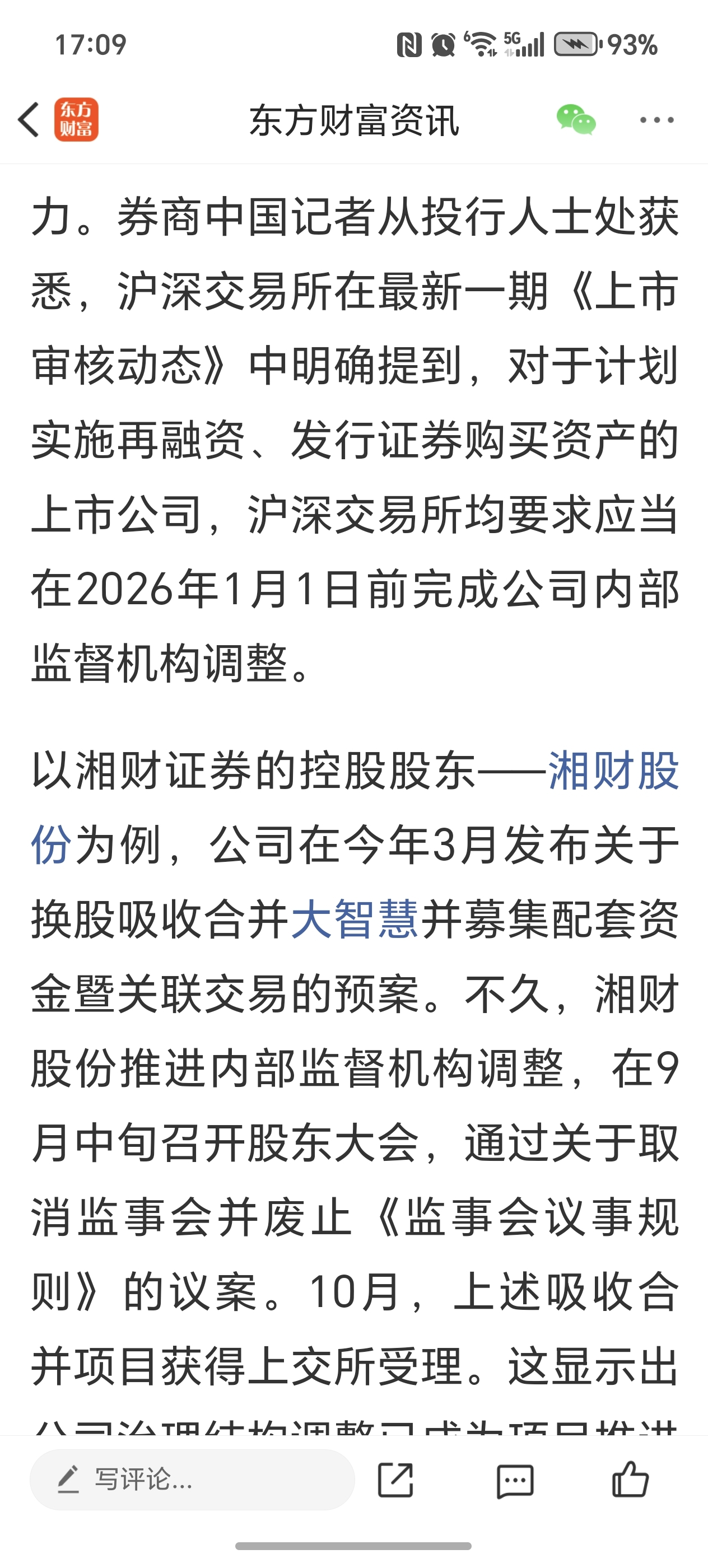 $深振业A(SZ000006)$ 监事会取消,涉及到并购重组的必须在2026年1月一号前完成。