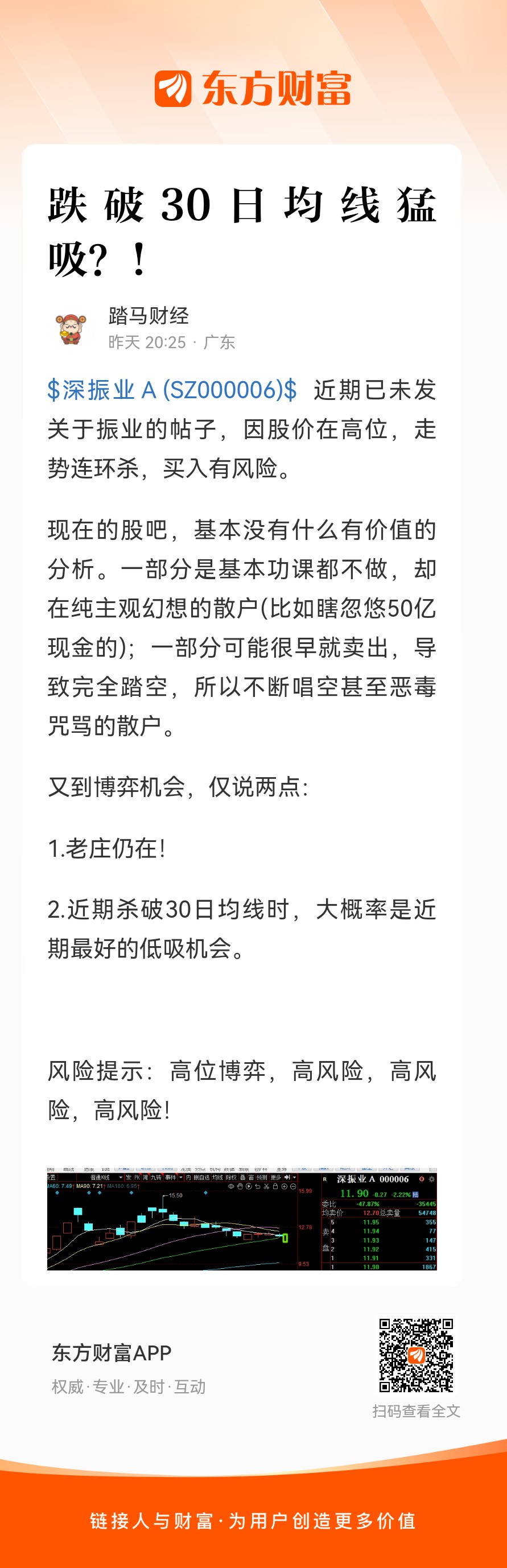 $深振业A(SZ000006)$ 近期已未发关于振业的帖子,因股价在高位,走势连环杀,买入有风险。