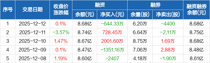 深振业A:融资净偿还644.33万元,融资余额8.68亿元(12-12)