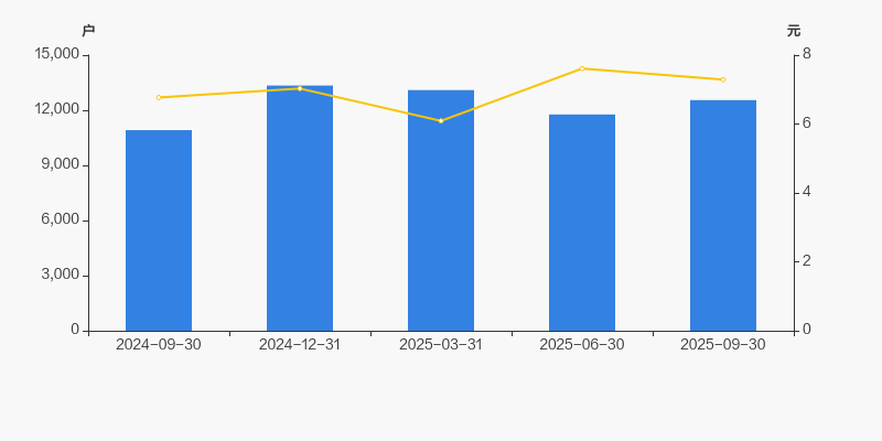 2024年9月30日至今,公司股东户数显著增长,区间涨幅为14.97%。2024年9月30日至2025年9月30日区间股价上涨7.68%。