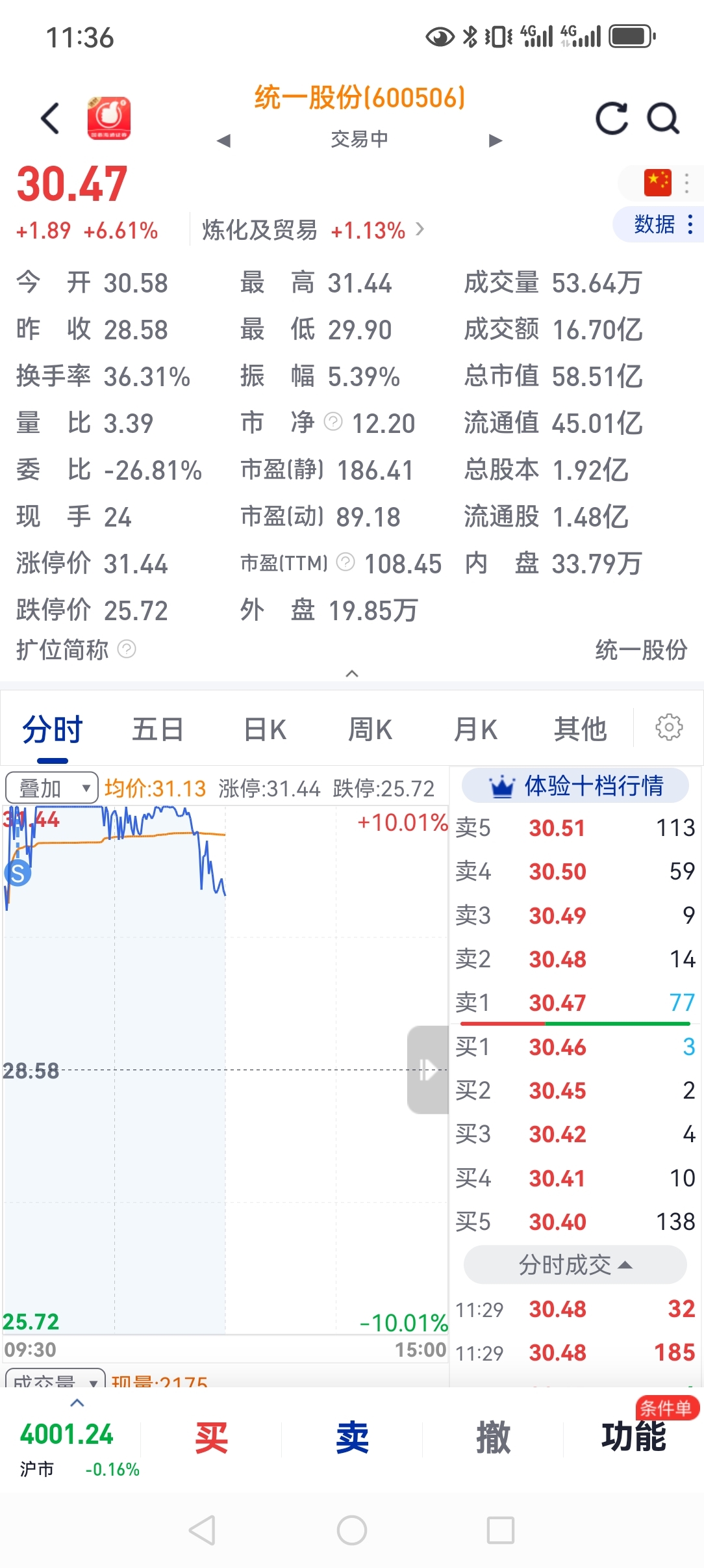 统一2个板涨停板走了,三孚还没走,前天的新金路表现不错,期待下午涨停让我走,杨子