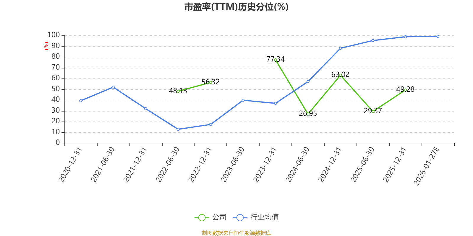以本次披露业绩预告均值计算,公司近年市盈率(TTM)图如下所示:
