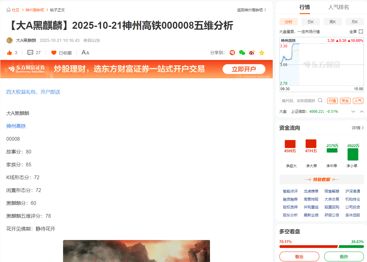 【大A黑麒麟】2025-11-11神州高铁000008五维分析!双11快乐!