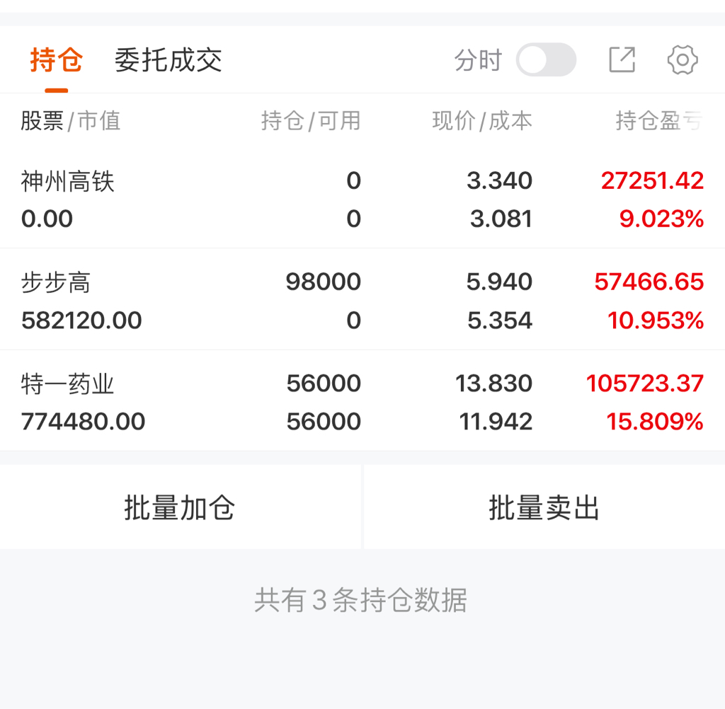 神州高铁清仓特一药业持仓步步高建仓今日A股三大指数普涨,上证指数技术指标强势但接