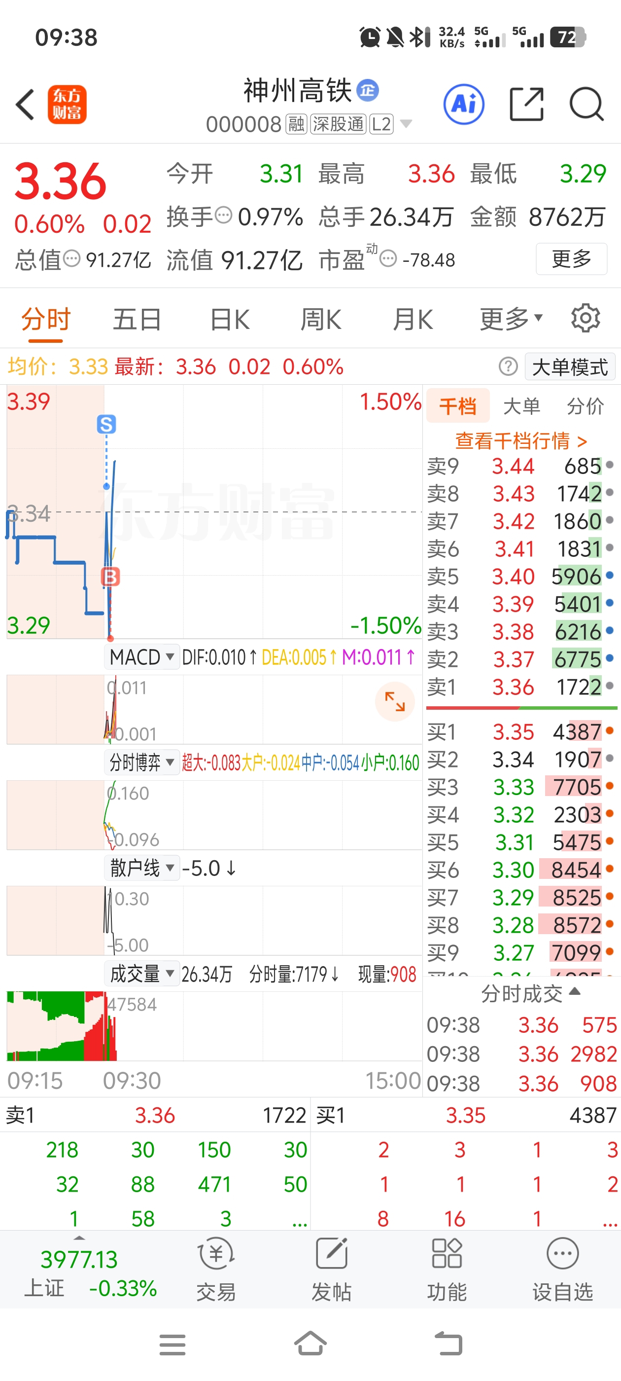 $神州高铁(SZ000008)$ T了6分钱,下班