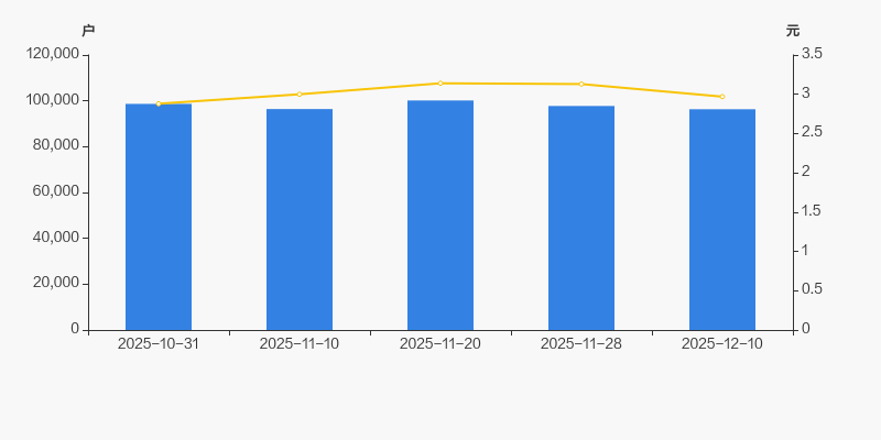 截至2025年12月10日,公司最新流通股本为27.16亿股。户均持有流通股数量由上期的2.78万股上升至2.82万股,户均流通市值8.38万元。