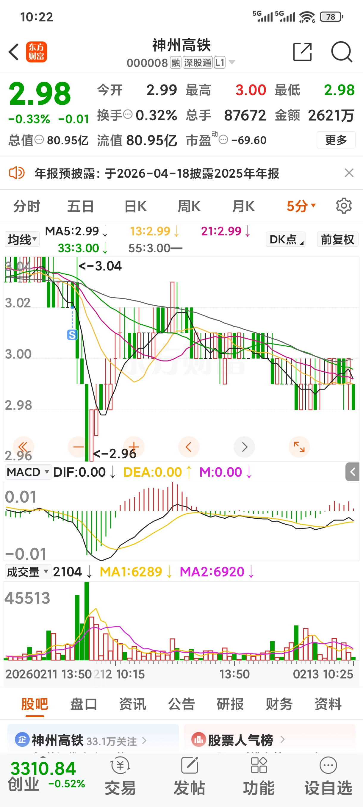 $神州高铁(SZ000008)$ 小庄。你拉我就下,你跌我就接回来