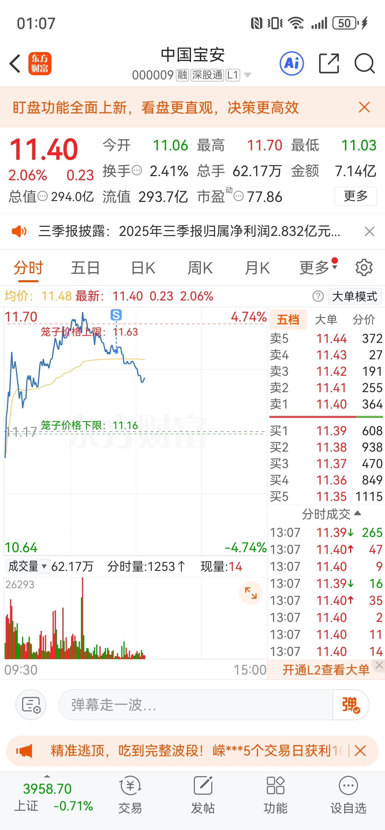 $中国宝安(SZ000009)$ 嘿嘿六个点满足了
