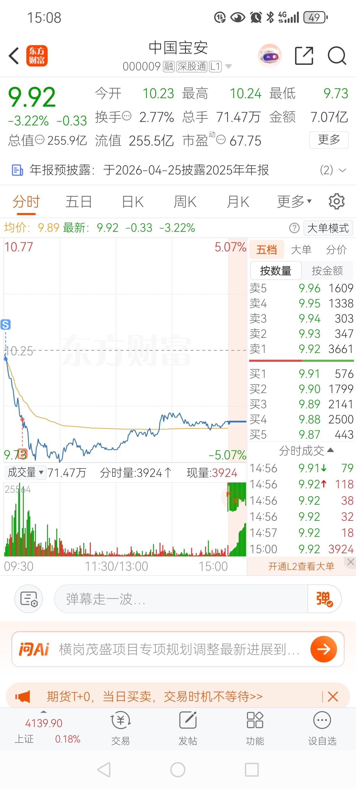 $中国宝安(SZ000009)$ B点有点早了