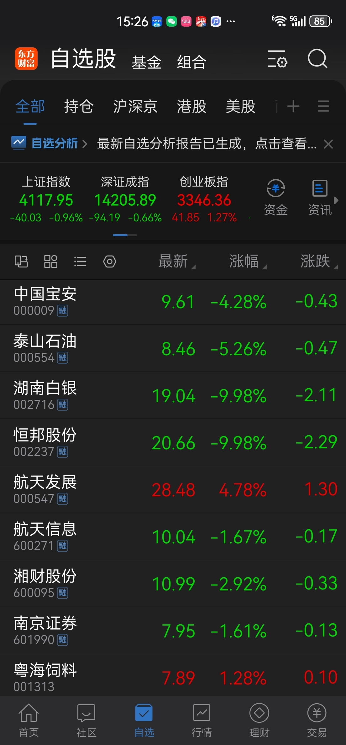 $中国宝安(SZ000009)$ 广东特宝区股真跌这么惨,我看看昨天说的同是广东股、饲料股今天争气了,一早赢了跑了,收尾还翻红,看看你这LJ,幸好没碰你,过完年再抄底,再还我损失。离过年越来越近了,大家都会守住钱子,过个幸福美满的春节。
