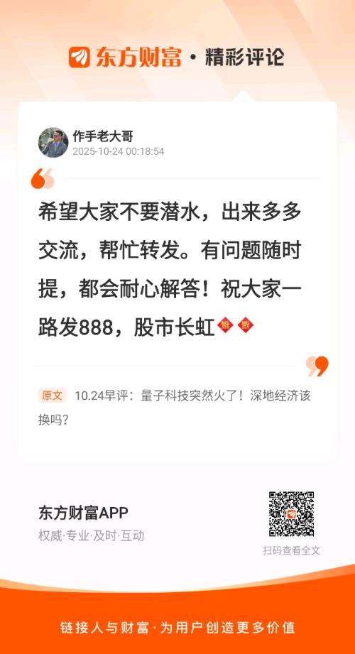 咱炒股的初心是为了更好的生活,不是为了每天跟着行情 “追涨杀跌”。量子科技火起来,是因为有政策托底(前沿赛道扶持)和技术突破(谷歌量子芯片、80 公里量子传输),不是 “一日游” 题材;深地经济虽然暂告一段落,但前排龙头的余温还在。记住:“波动不是风险,本金的永久性丧失才是”,别因为一时的焦虑,把手里的好票卖在低点,也别盲目追新题材的高,稳住节奏最重要。