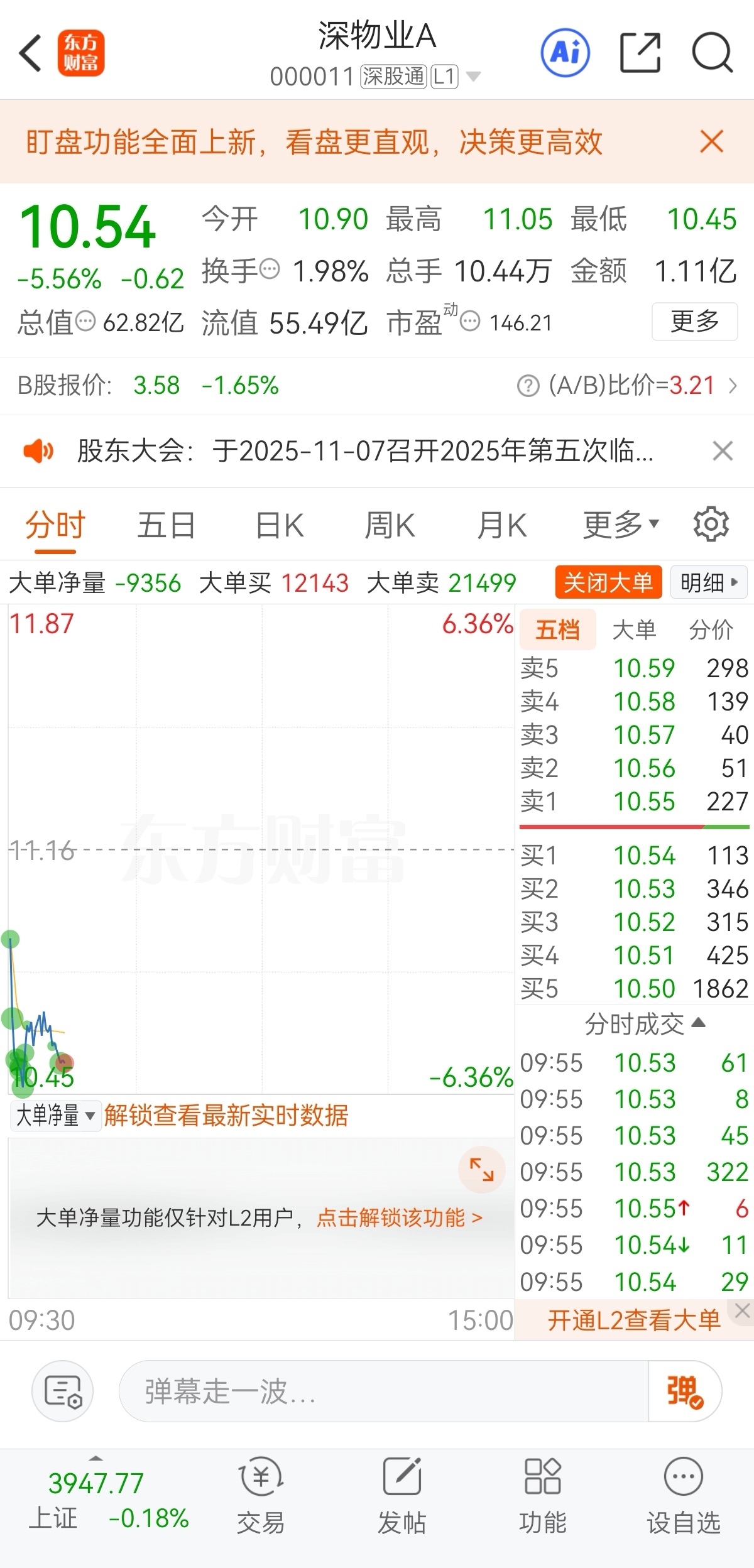 $深物业A(SZ000011)$ 全是大单卖出,大佬们都跑了。小亏当赢