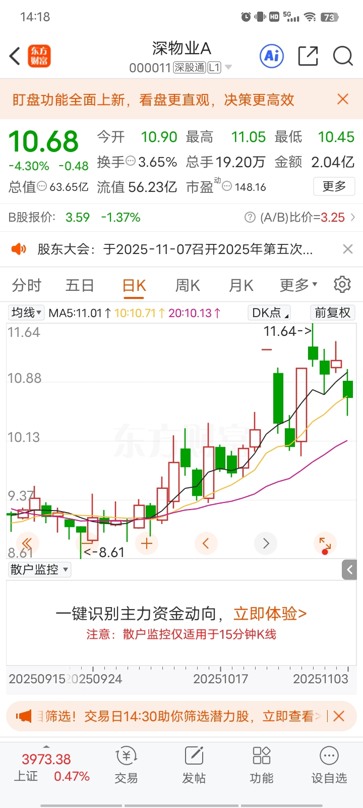 $深物业A(SZ000011)$ 明天四阴夹一阳,水下买进来半仓
