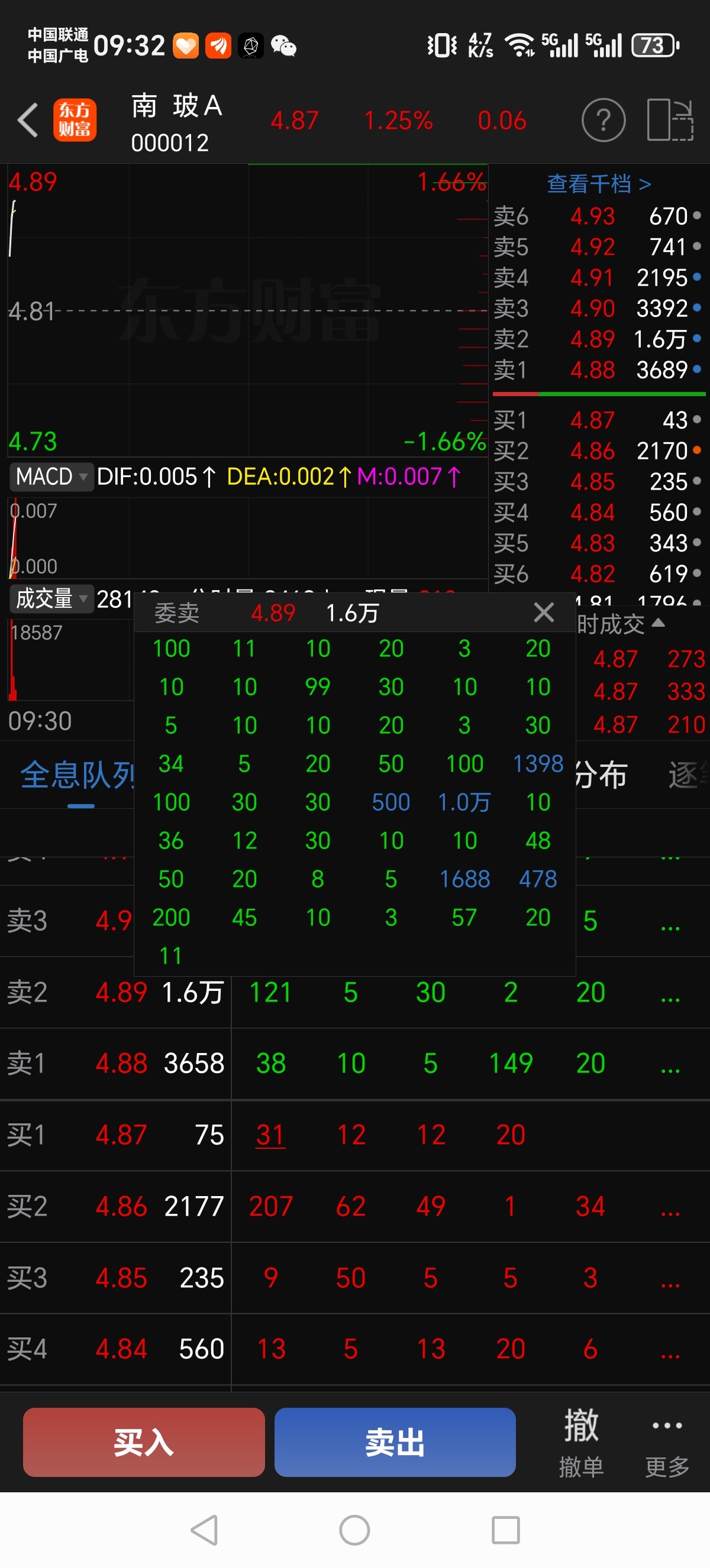 $南 玻A(SZ000012)$ 4.88价位这挂单有什么信号或含义,给谁发暗号?