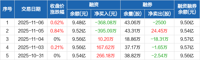 南玻A:融资净偿还368.08万元,融资余额9.48亿元(11-06)