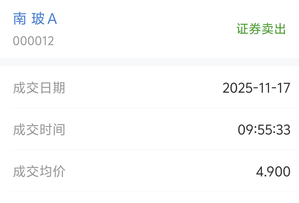 $南 玻A(SZ000012)$ 朱老师提示马上暴跌,4.87挂单全部卖出