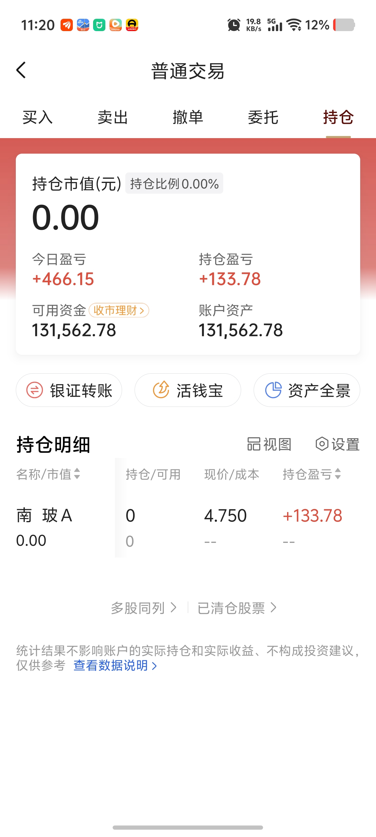 $南 玻A(SZ000012)$  4.75朱老师提示割肉止盈了