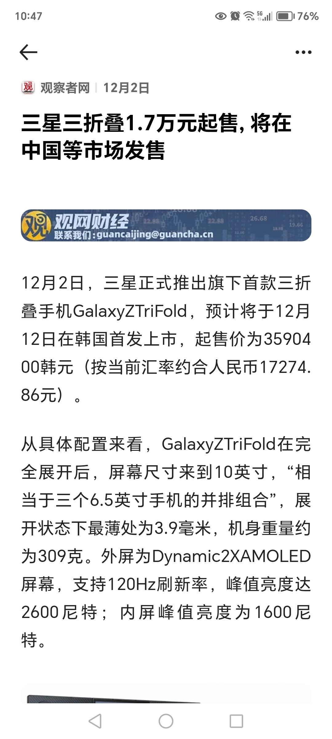 $南 玻A(SZ000012)$ 手机进入折叠时代,三星折叠屏手机正式发售