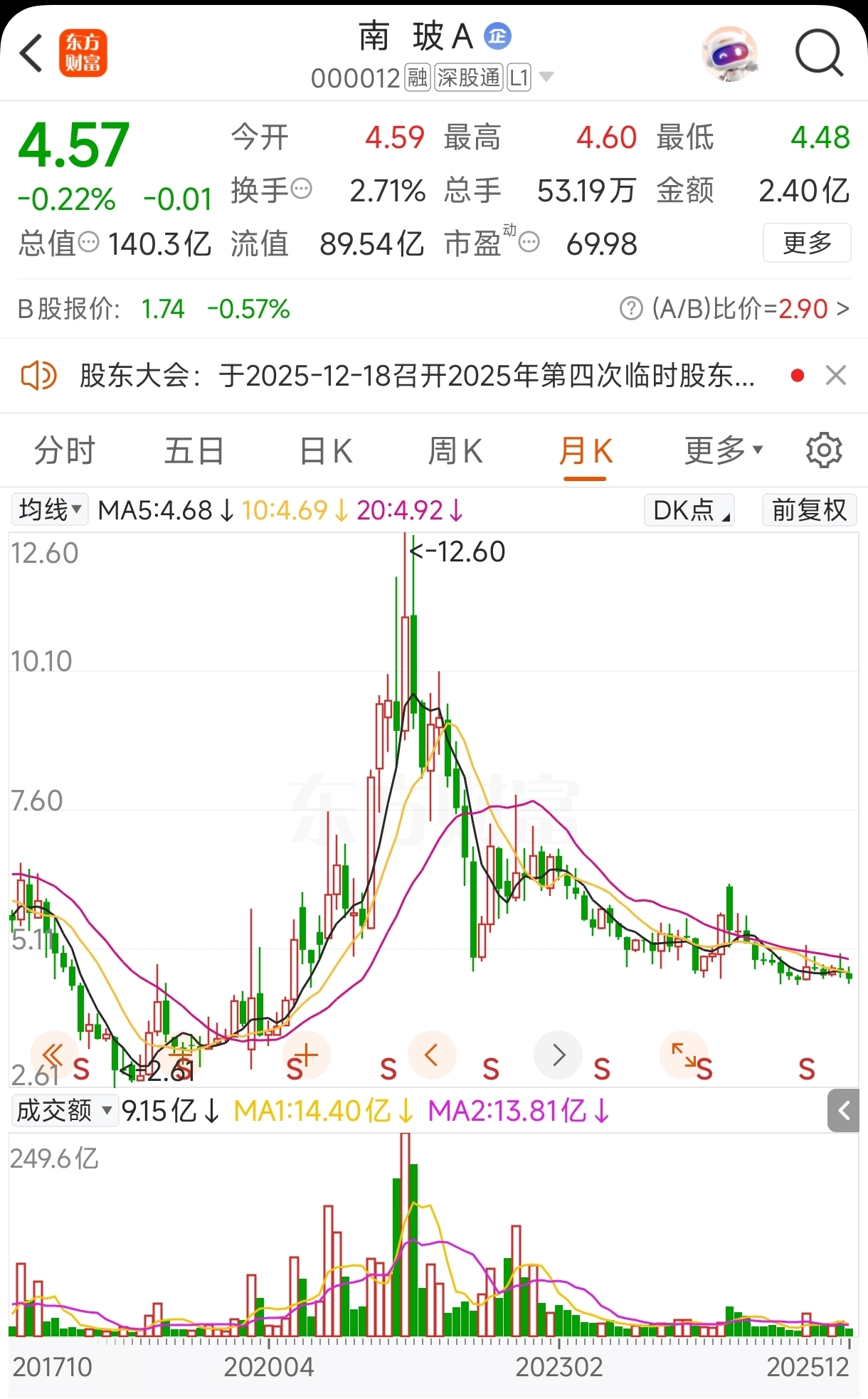$南 玻A(SZ000012)$ 南玻A的月K线图,市场是对的。