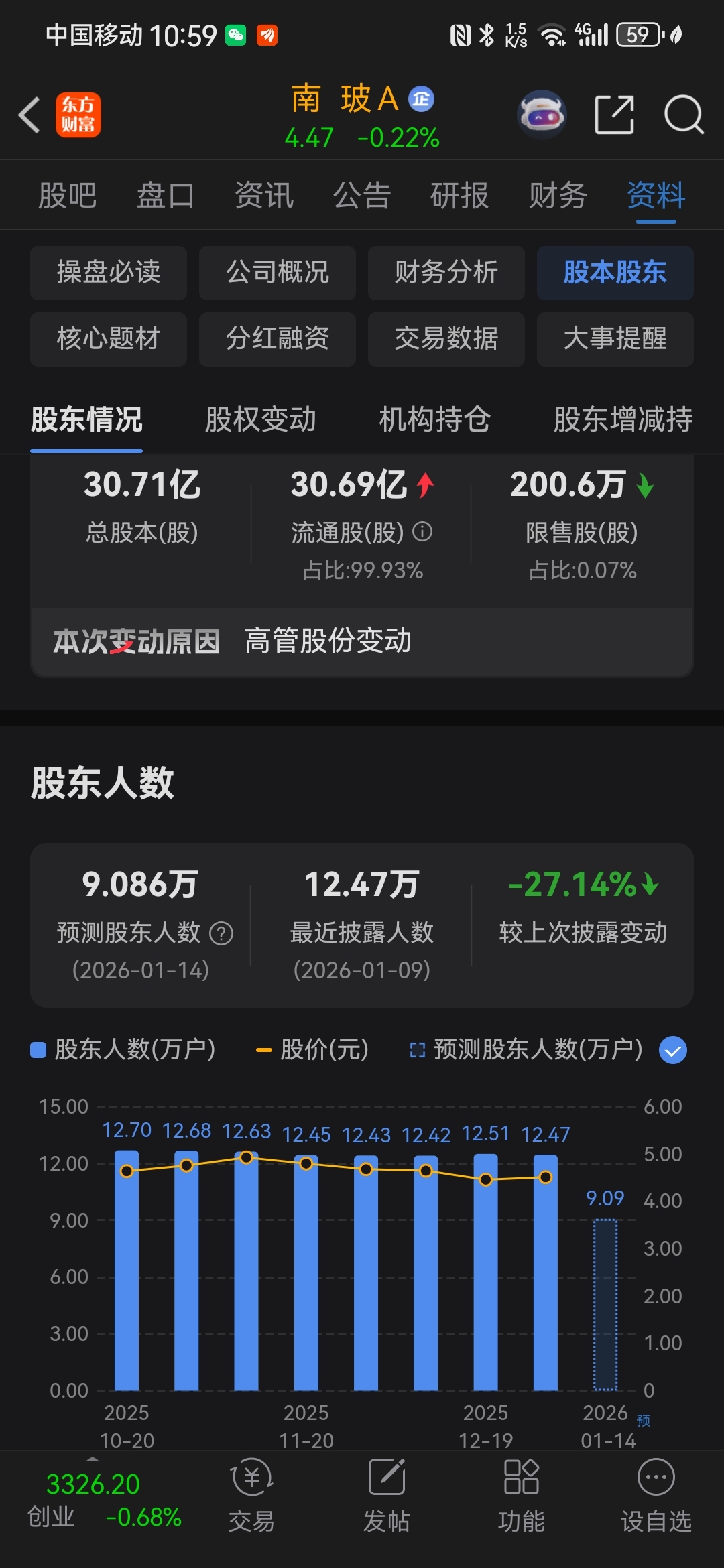 $南 玻A(SZ000012)$ 东财显示预测股东实时人数9号到14号从12万多到9万多,这三天洗出去几万人吗?各位大侠有没有知道这个数据准不准呀?