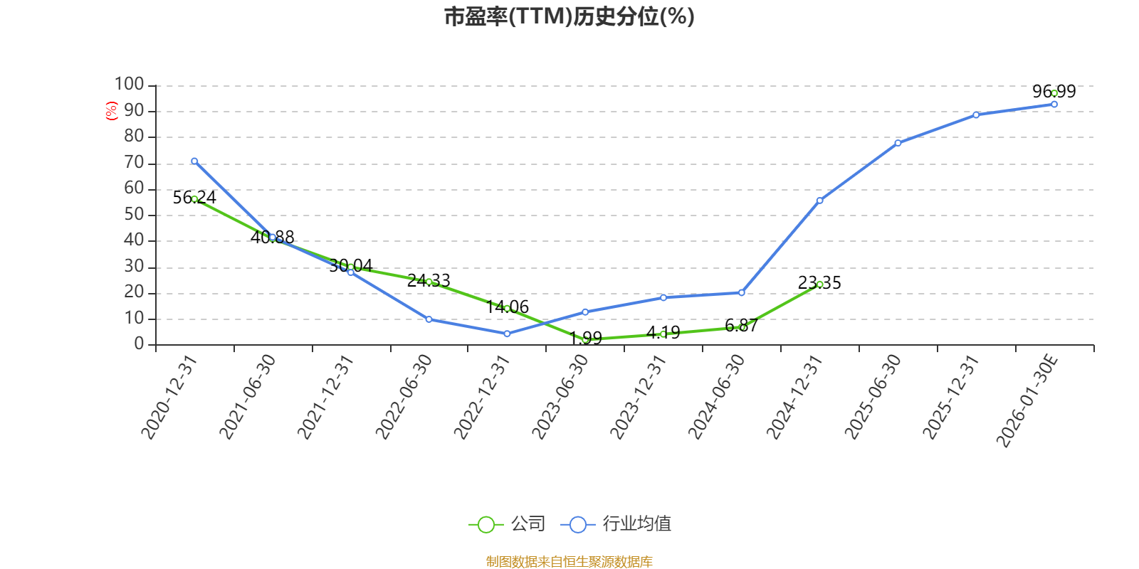 市盈率、市净率为负时,不显示当期分位数,会导致折线图中断。