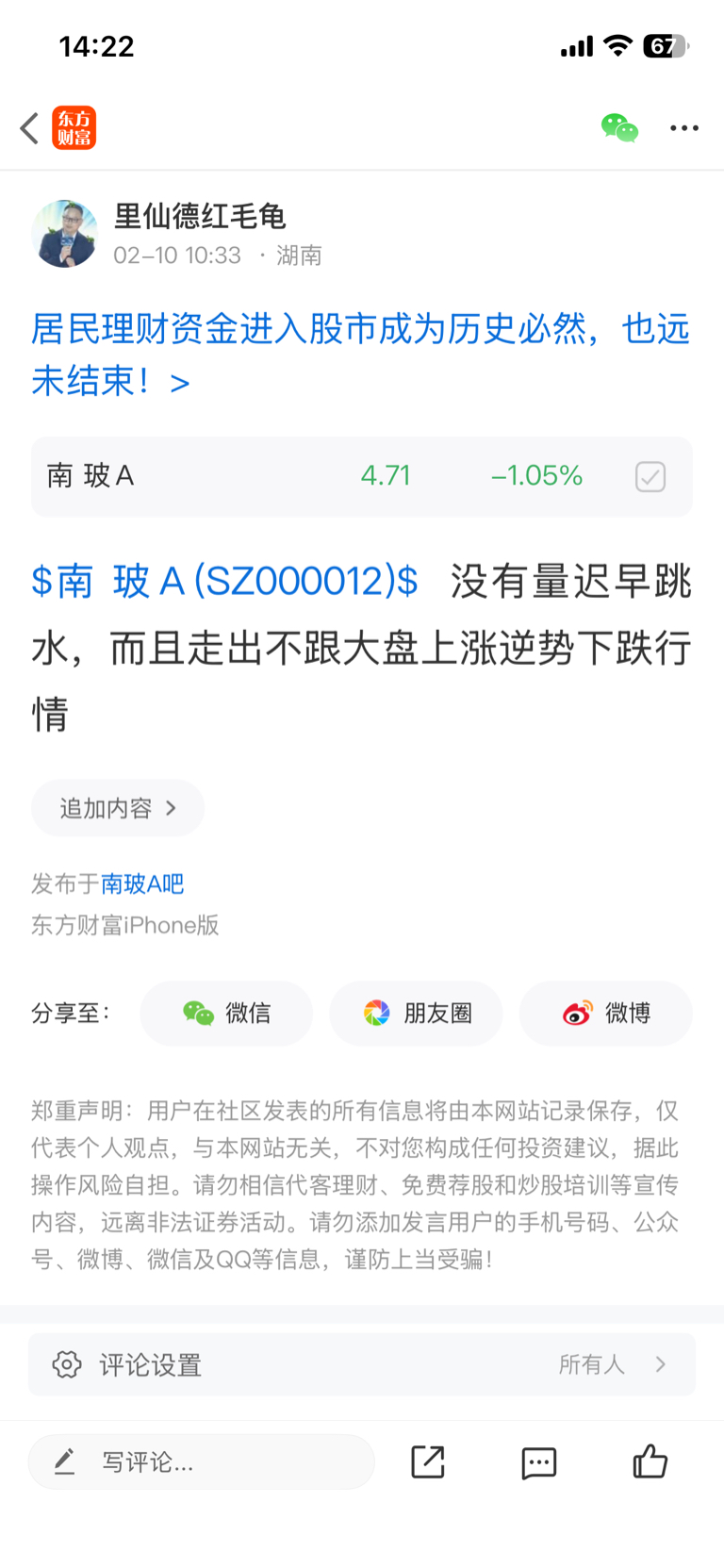 温馨提示: 1.根据《证券法》规定,禁止编造、传播虚假信息或者误导性信息,扰乱证券市场;2.用户在本社区发表的所有资料、言论等仅代表个人观点,与本网站立场无关,不对您构成任何投资建议。用户应基于自己的独立判断,自行决定证券投资并承担相应风险。《东方财富社区管理规定》