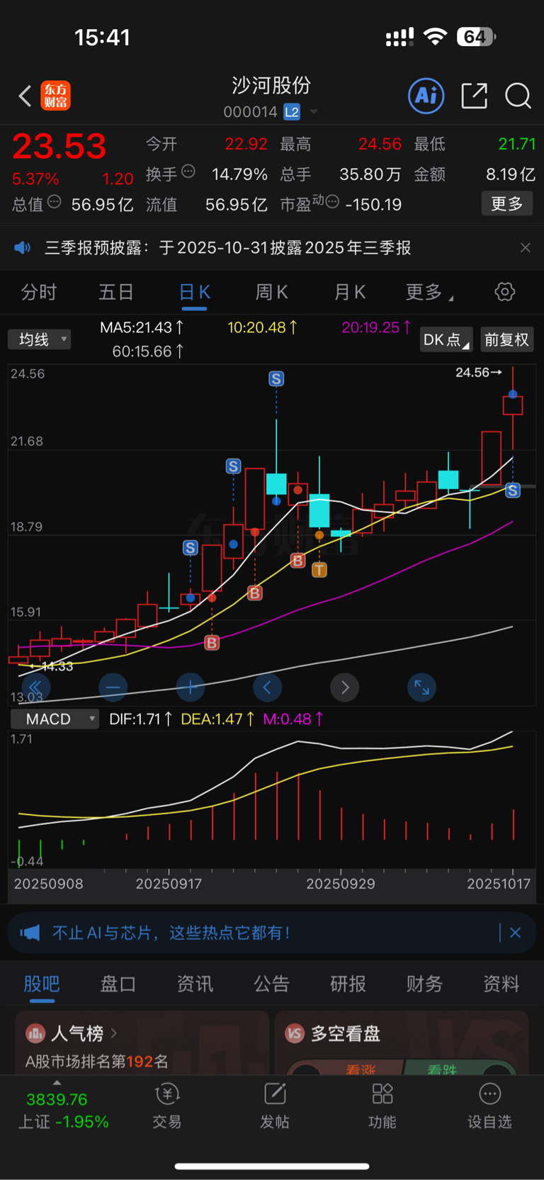 $沙河股份(SZ000014)$ 鸭子张嘴