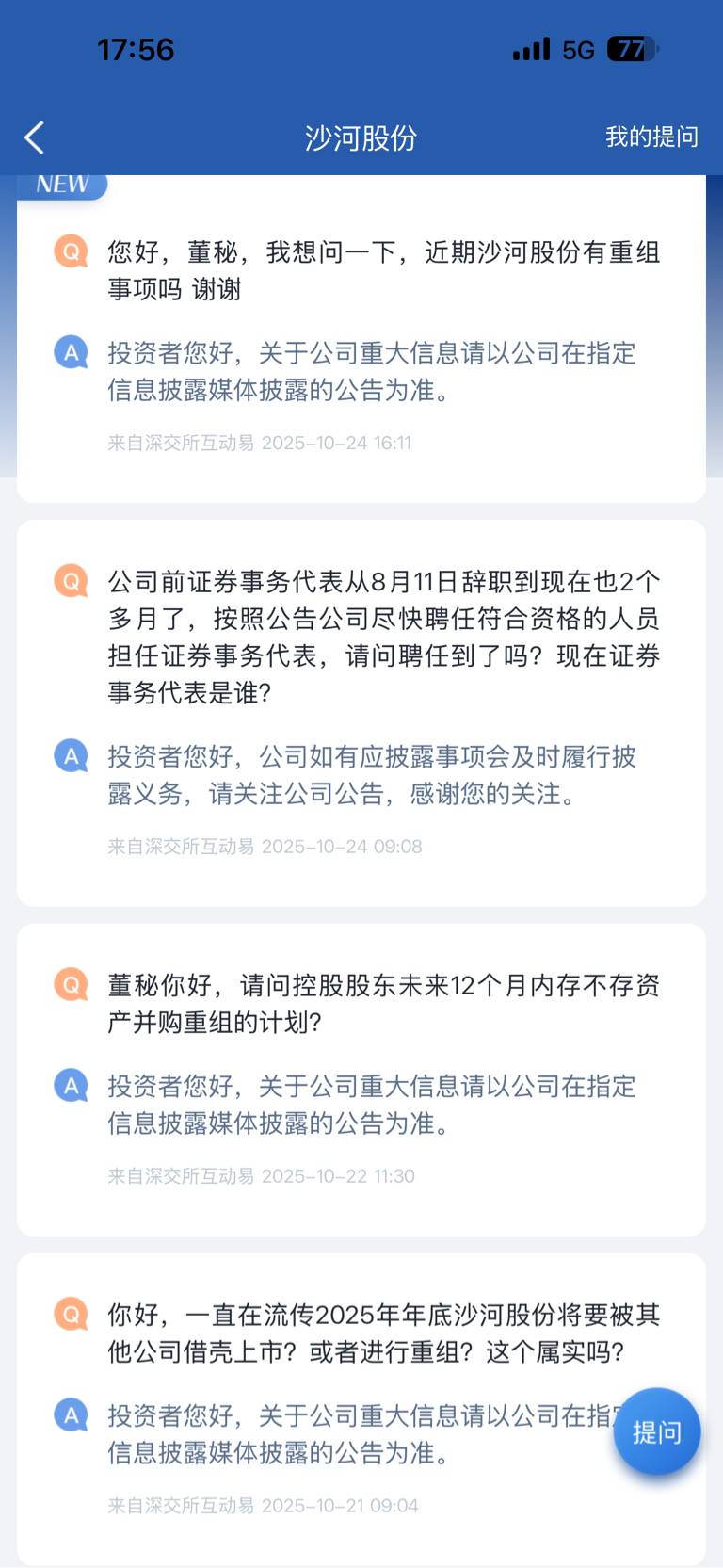 $沙河股份(SZ000014)$ 不厌其烦地问,不厌其烦地回答